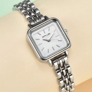 Relógio prata de quartzo com ponteiro quadrado